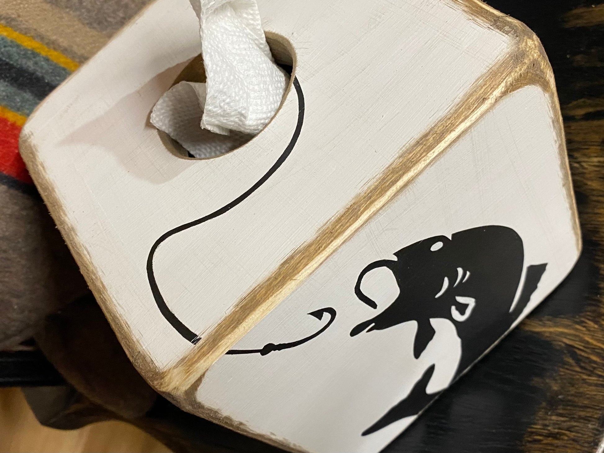 This Bass Fish tissue box is perfect to add your love of fishing to your room or home. Lightly distressed to compliment mancave or fishing camp decor!