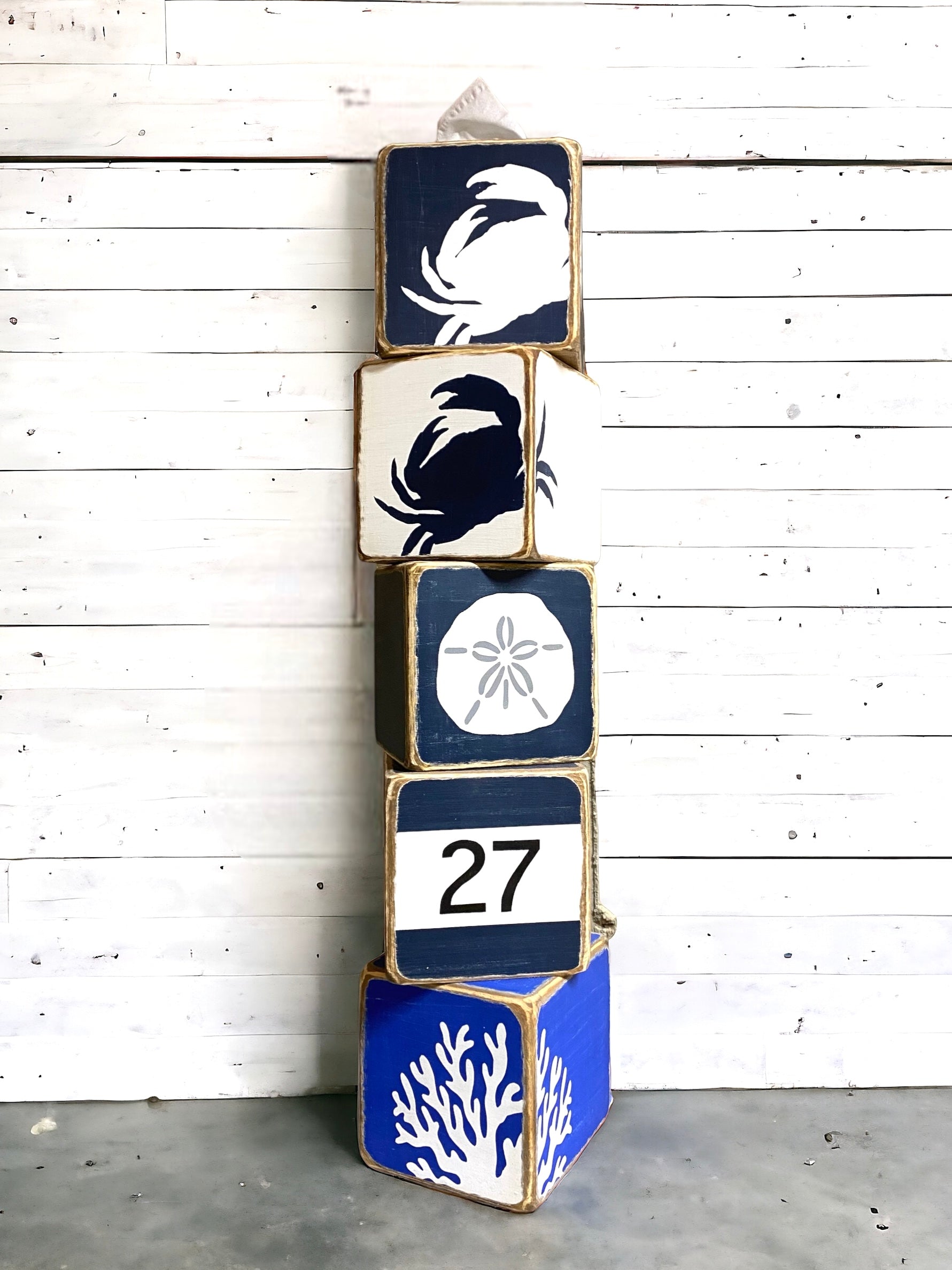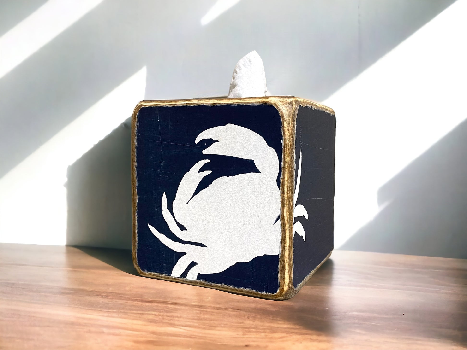 This crab tissue box is perfect to add a bit of the ocean to your room or home. Lightly distressed to compliment beach cottage or weathered coastal decor!