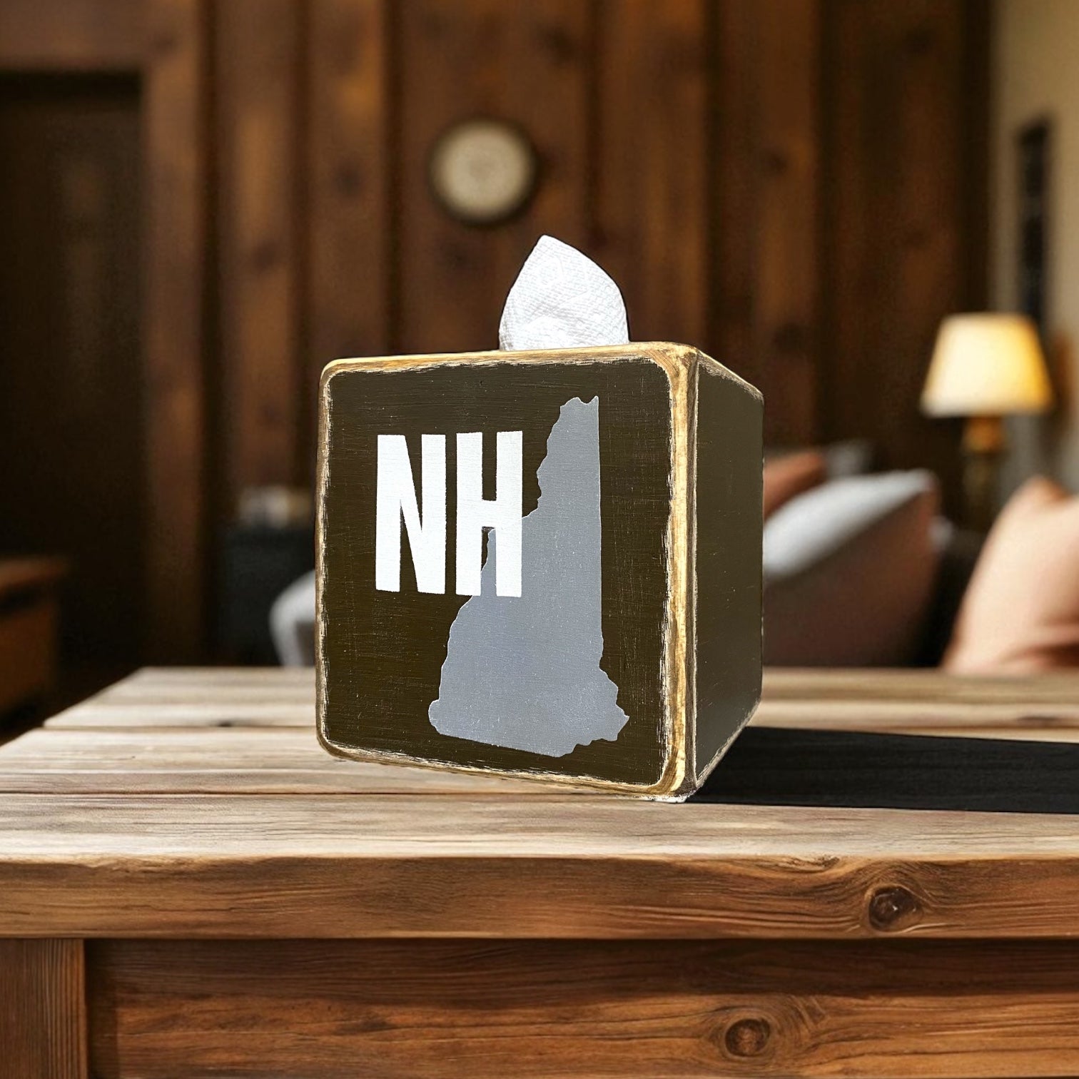This New Hampshire tissue box cover is perfect to add a bit of New England to your room or home. Lightly distressed and perfect for farmhouse or cabin.